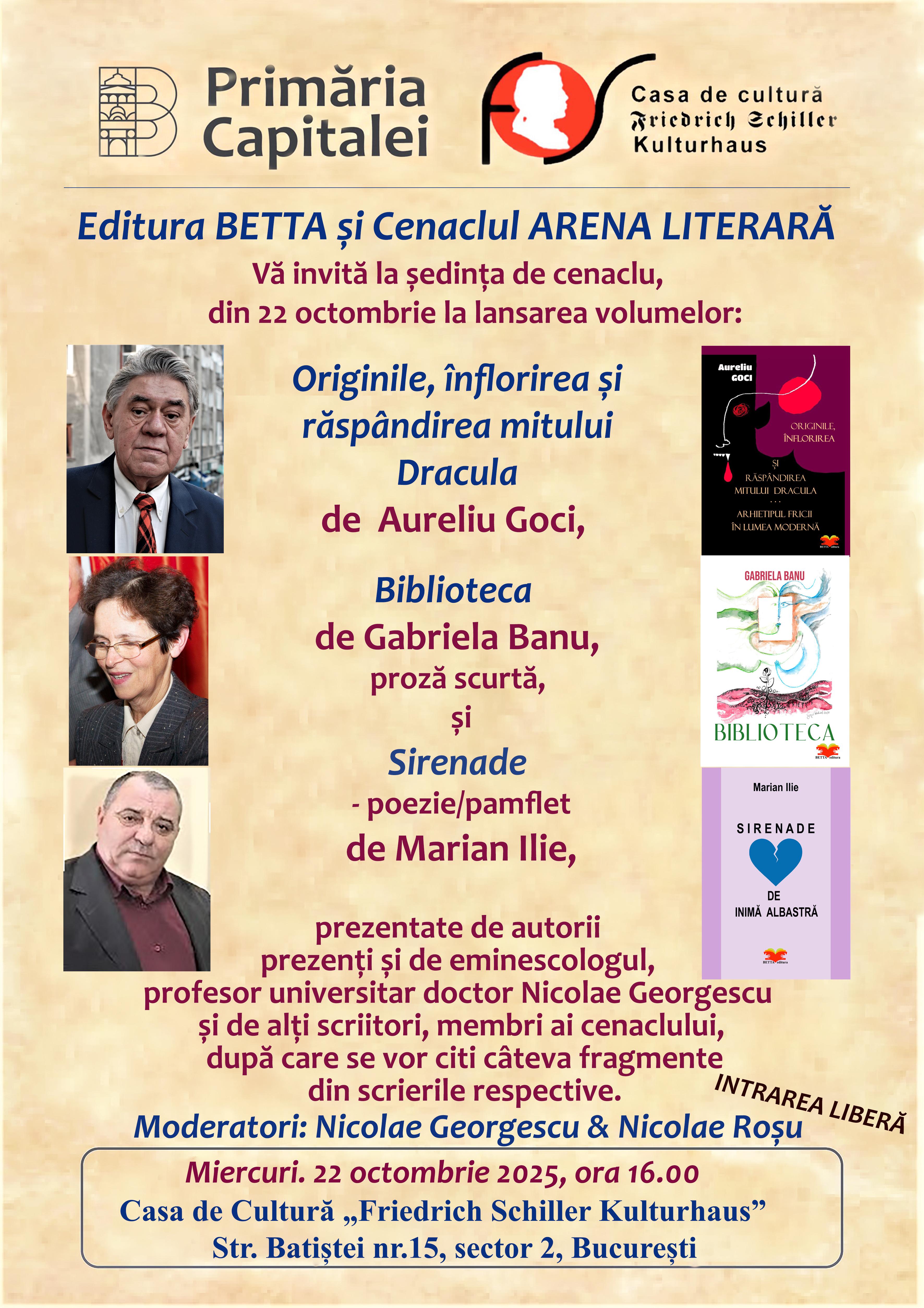 Citește mai mult... Lansare de Carte – Editura BETTA și Cenaclul ARENA LITERARĂ