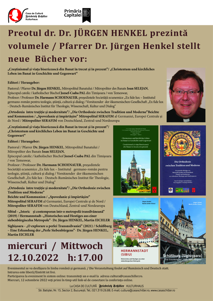 Citește mai mult... Preotul Dr. JÜRGEN HENKEL prezintă volumele: „Creștinismul și viața bisericească din Banat în trecut și în prezent”…