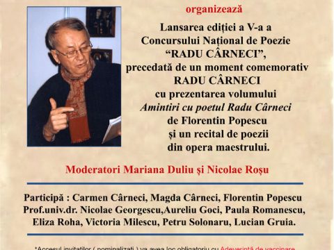 Citește mai mult... Lansarea ediției a V-a a Concursului Național de Poezie „Radu Cârneci”